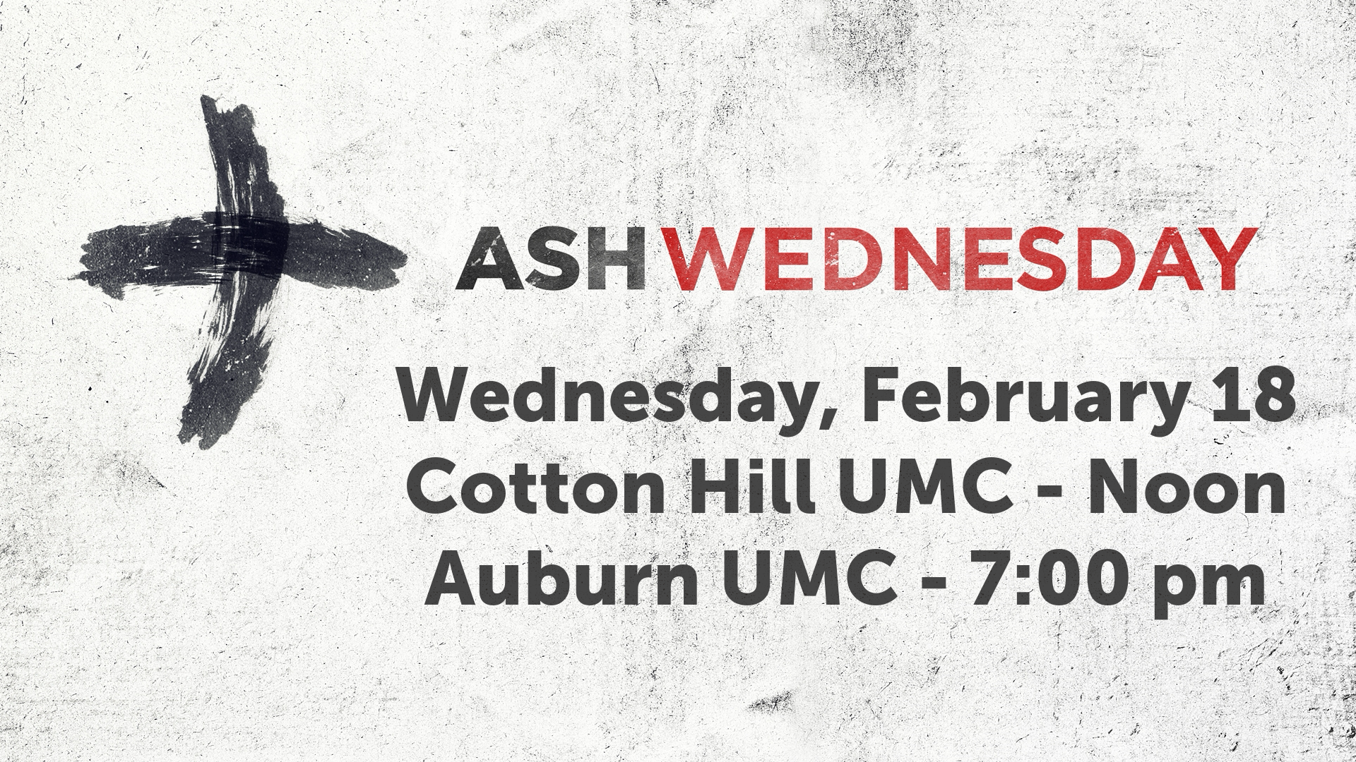 You are welcome to come as you are for our noon Ash Wednesday service in Springfield (5931 N. Cotton Hill Rd.) or our 7:00 pm service at Auburn UMC (14100 State Rte 4, Auburn, IL).